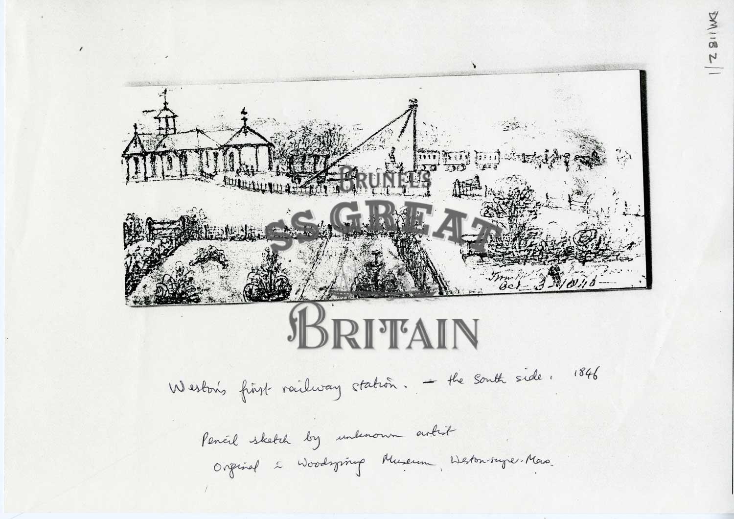 DescriptionXerox copy of a pencil sketch of Alexandra Parade station - Weston's first railway station - the south side.