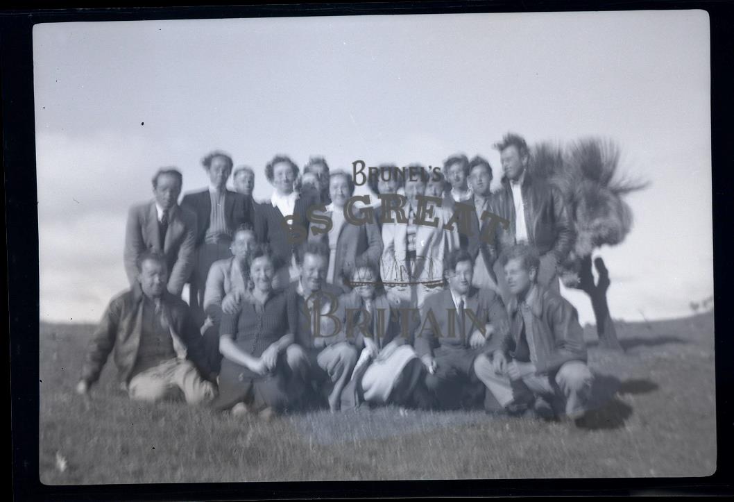 DescriptionBlack and white landscape photographic negative of twenty people - likely including the crew of the Passat. Taken when the Passat was docked in Bunbury, Western Australia in 1947.