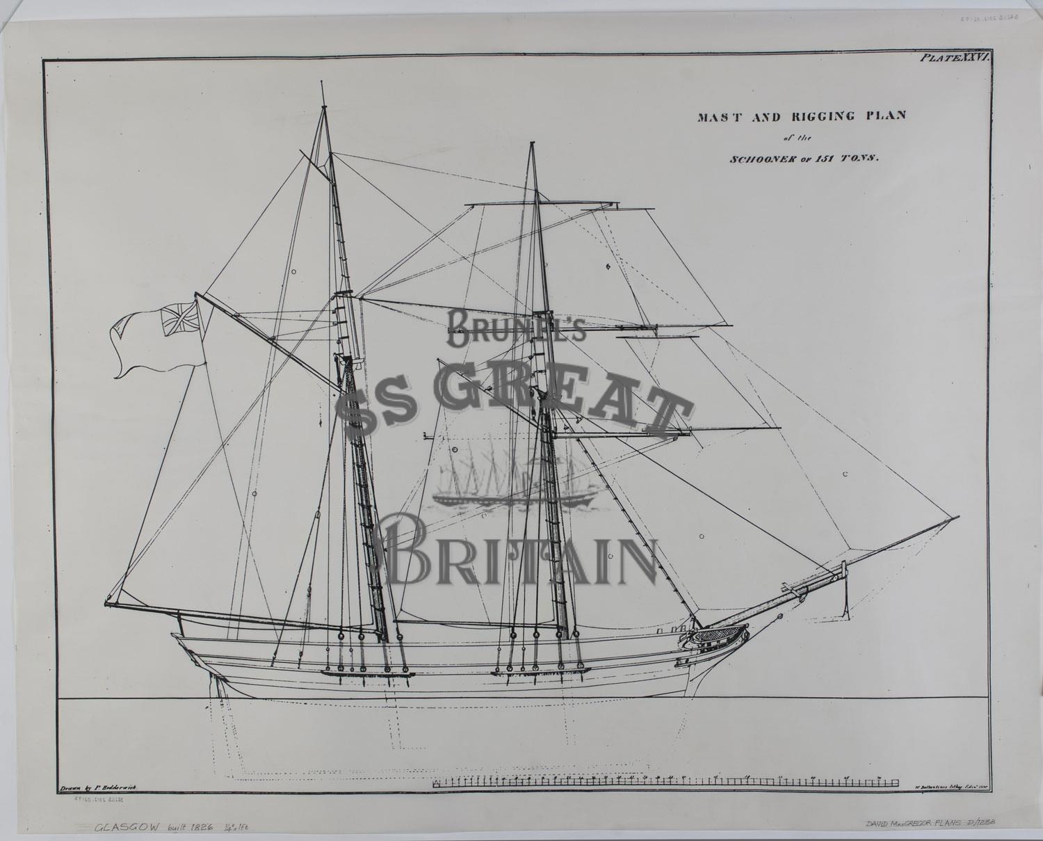 DescriptionSchooner Glasgow. Sail and rigging plan (profile). Scale 1/4 inch to 1 foot.