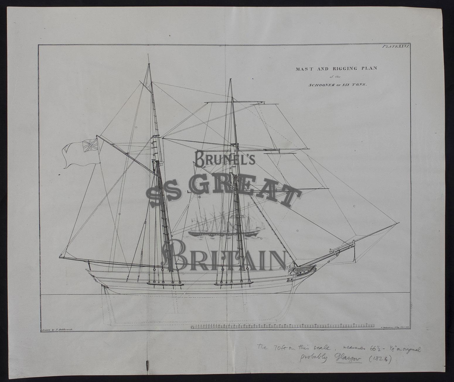 DescriptionSchooner Glasgow. Sail and rigging plan (profile). Scale 1/8 inch to 1 foot. Annotated by David MacGregor.