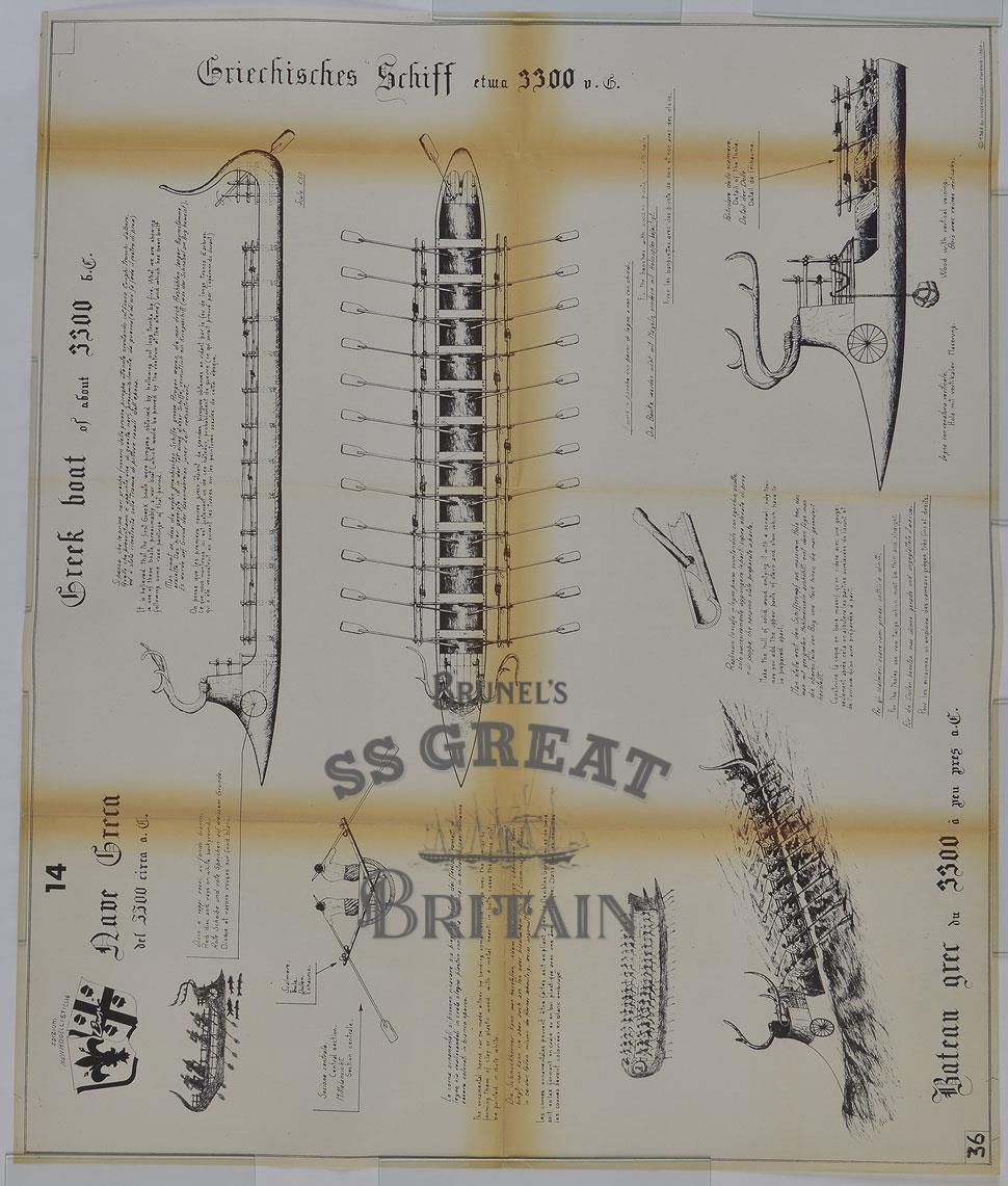 DescriptionModelling plan for Greek Boat c.3300 BC. General arrangement (profile, deck plan) perspective and details.