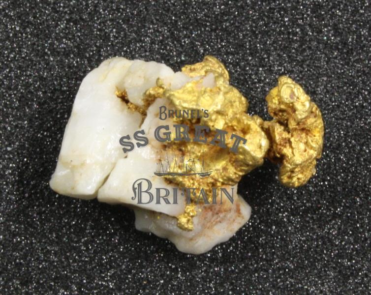 DescriptionGold nugget, embedded in quartz. Recovered from the wrecksite of the steamship Royal Charter.