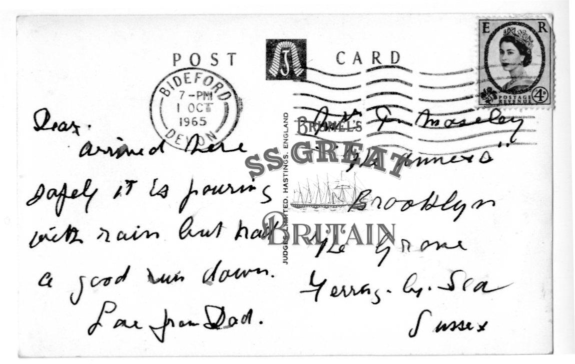 DescriptionLandscape orientation. Recto: four images of Appledore, three show slightly different shots of The Quay with buildings and harbourside road and boats moored at harbour wall, the forth shows Irsha Street. Verso: message about holiday. 1965. 4d stamp with Queen Elizabeth ll's head.