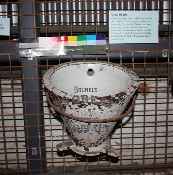 DescriptionIron crew head (toilet) with enamel interior, from ship's forecastle.