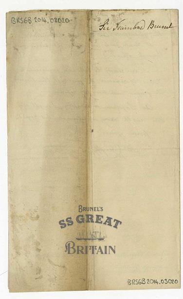 Credit line“Accepted under the Cultural Gifts Scheme by HM Government from Clive Richards OBE DL and allocated to the ss Great Britain Trust, 2017”