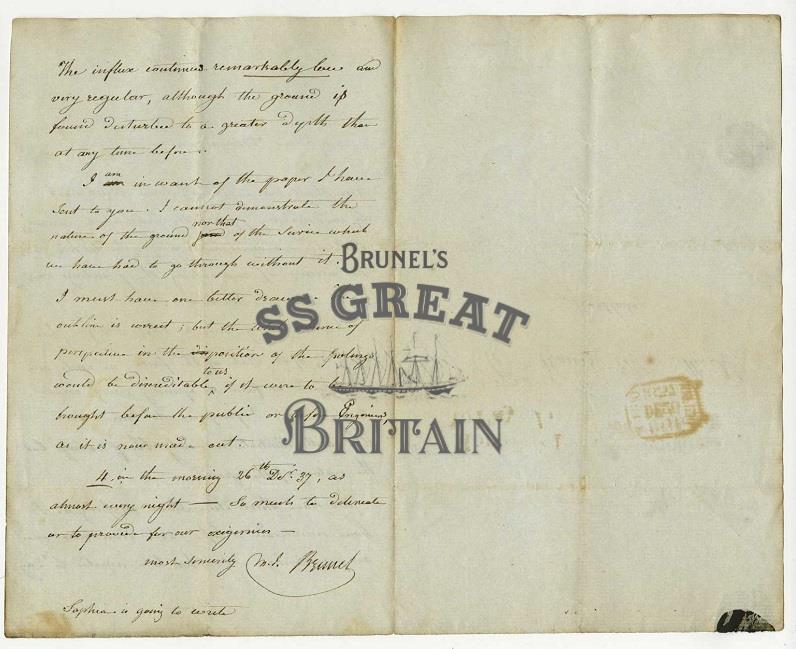DescriptionLetter by Sir Marc Isambard Brunel to his son-in-law Benjamin Hawes, postmarked 26 December 1837. Written at '4 in the morning' and refers to the construction of the Thames Tunnel.