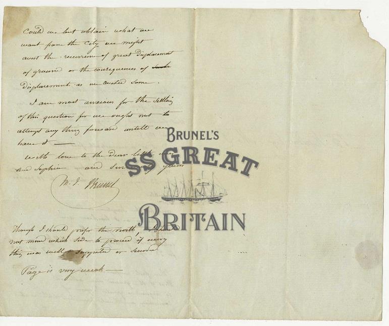 Signed 'M.I. Brunel'. One sheet of paper folded. Addressed to 'Bn. Hawes Esq M.P' on reverse. Remains of a red seal in the bottom left corner on reverse. .