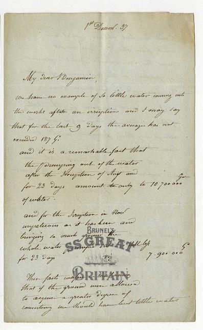 Letter by Sir Marc Isambard Brunel to Benjamin Hawes regarding the Thames Tunnel, 1 December 1837