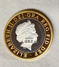 Title£2 (two pound) silver proof coin commemorating the 200th anniversary of the birth of Isambard Kingdom Brunel (1806 to 2006), depicting Brunel and the Royal Albert Bridge