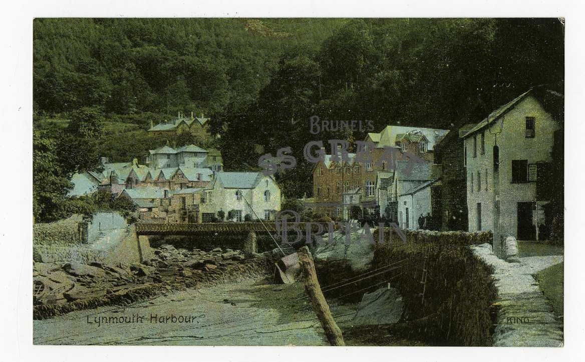 DescriptionLandscape orientation. Recto: Shows wooden post in foreground, harbour in centre, ropes attached to wall on right, bridge in midground, buildings on right and beyond bridge, steep green hill in background. Verso: blank