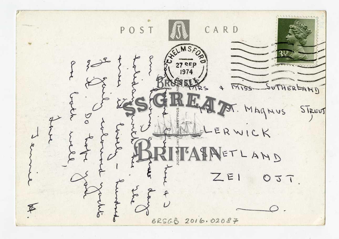 DescriptionLandscape orientation. Recto: Burnham-on-Crouch, Essex. Shows people walking on path between harbour and buildings on right; blue shed in front of wooden slipway in foreground. Veeso: message about coloured yachts. 3 1/2p stamp.