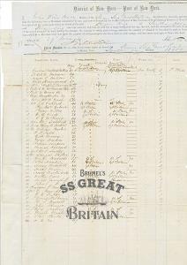Passenger list of the 'Great Eastern', 29 June 1860