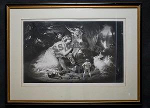 TitleFramed Mezzotint print of Midsummer Night's Dream after Sir Edwin Landseer