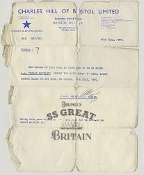 TitlePass from Charles Hill allowing holder on board the SS Great Britain 19th July 1970