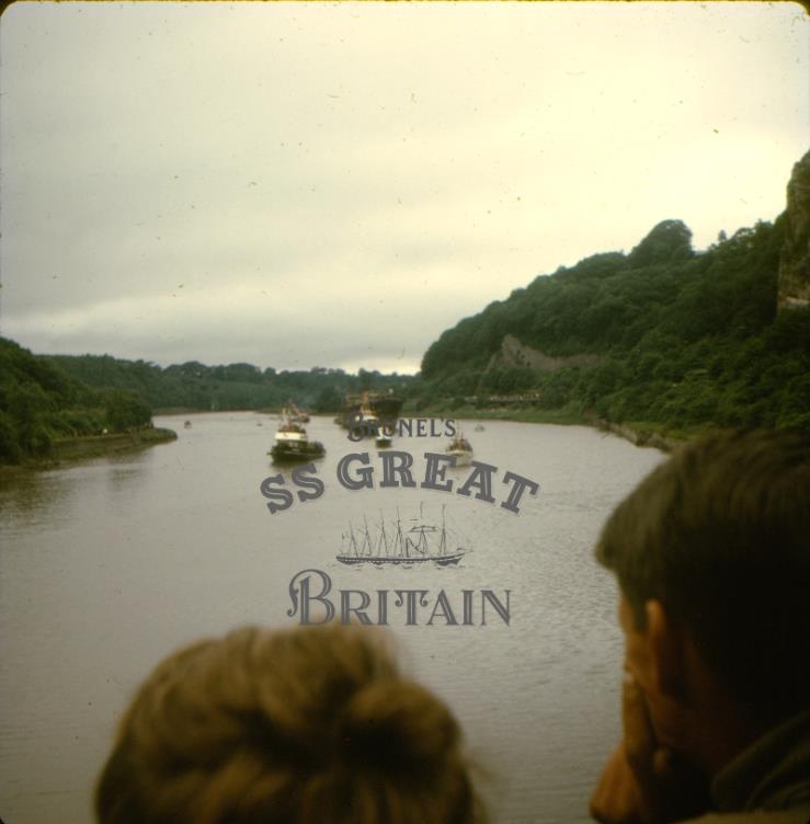 DescriptionImage of the ss Great Britain being towed up the river Avon. Looking from ahead, tugs in front of ship.