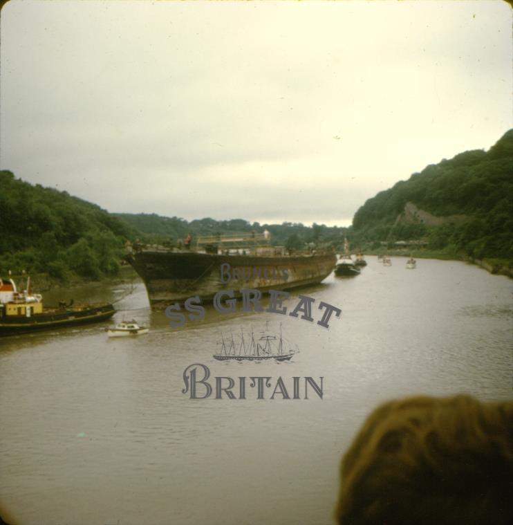 DescriptionImage of the ss Great Britain being towed up the river Avon. View of port side.