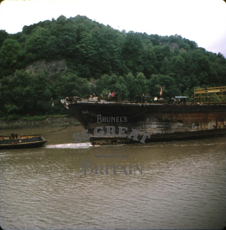 DescriptionImage of the ss Great Britain being towed up the river Avon. Detail of port bow quarter.