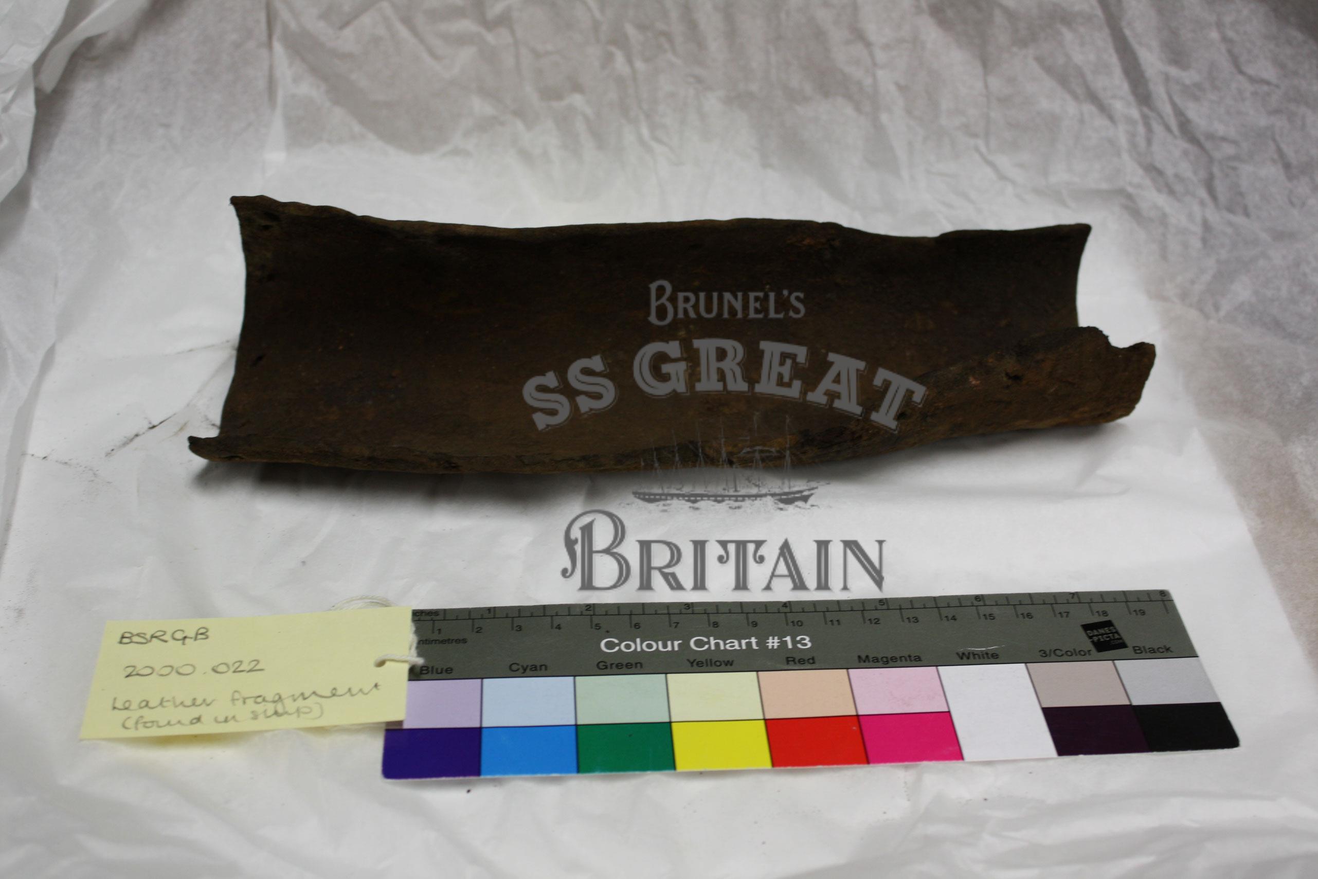 An old label found with the item stated that it was found inside the ss Great Britain after the salvage in 1970, in a forward starboard box section and that it could be an arm or leg guard. The tag was marked by Paul Williams.