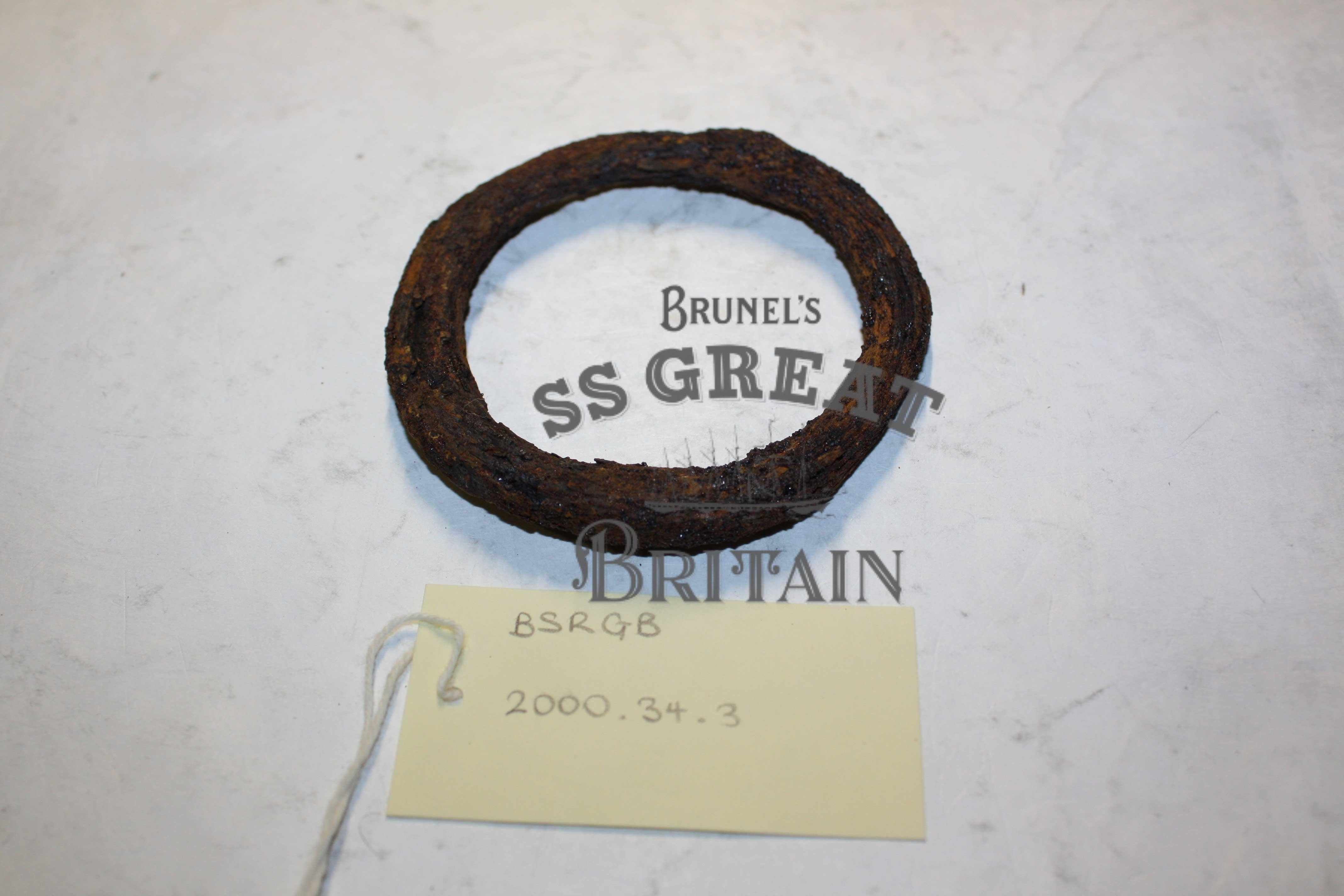 DescriptionRing, iron, 4 " diameter, 0.5 inch thick, corroded. Use unknown. Found in ship