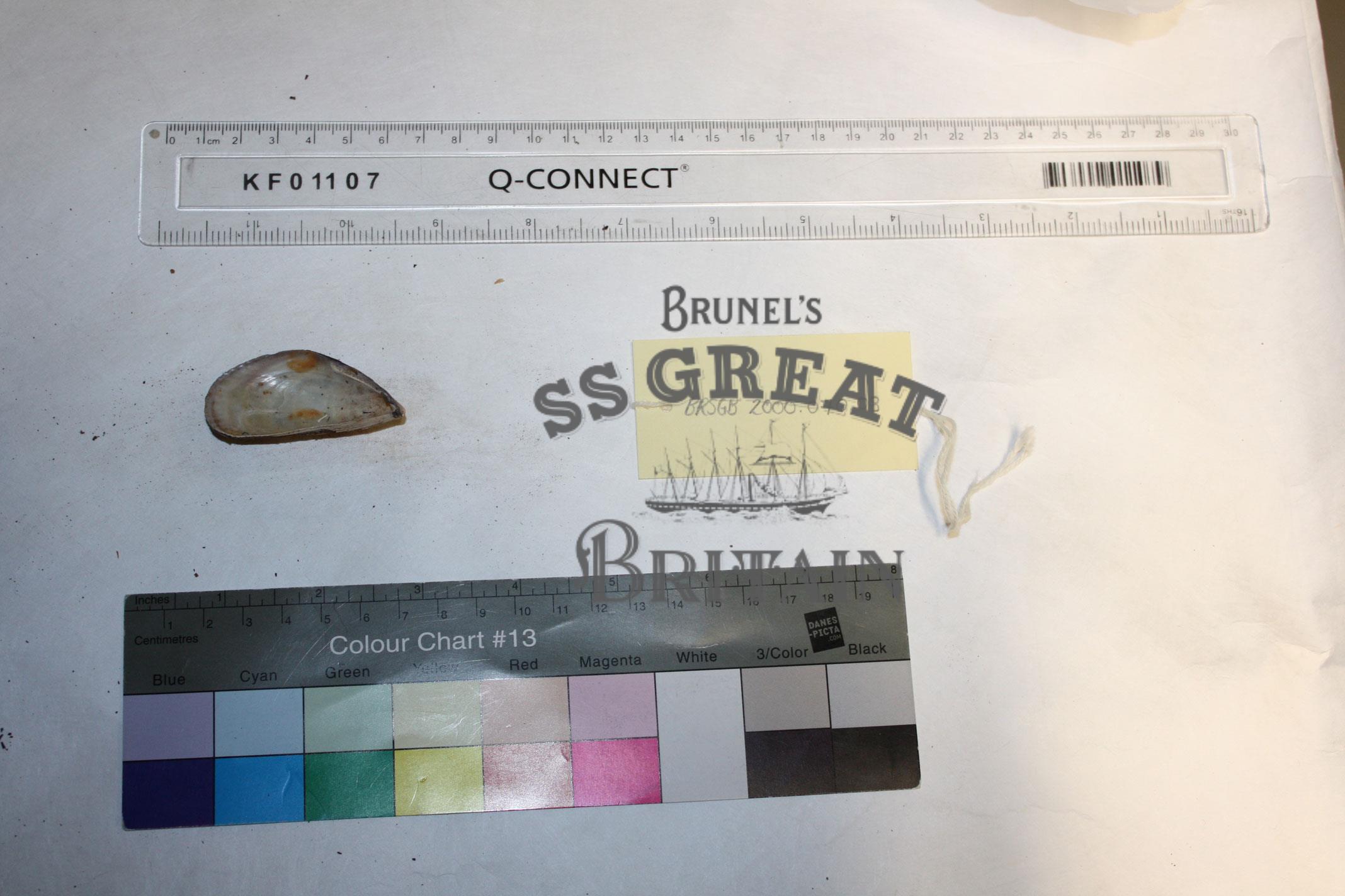 DescriptionMussel shell found in ss Great Britain after she was salvaged from the Falkland Islands in 1970.