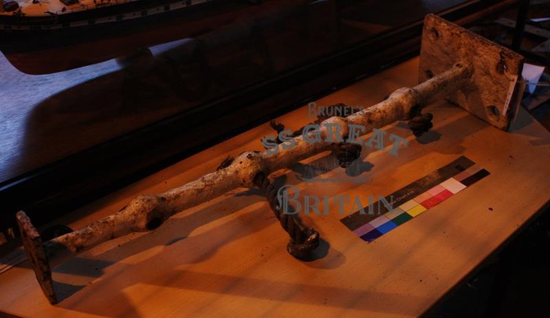 DescriptionIron stanchion, complete with base plate,. Remnants of white paint and rope attached to three points.