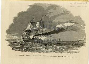 On the back of the paper is a further engraving showing the paddle steamer 'HMS Torch' rescuing the crew and passengers from the wreck of the 'Ningpo' in 1854.