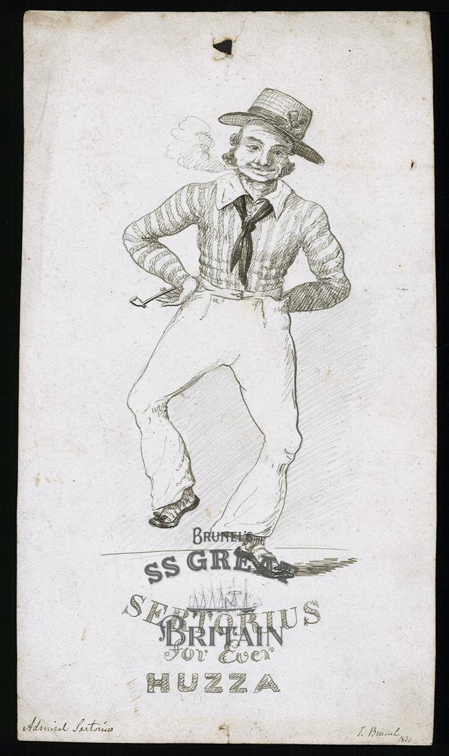 DescriptionA pencil caricature drawing depicting Admiral Sertorius smoking a pipe, signed I. Brunel 1833. Most likly Marc Brunel.