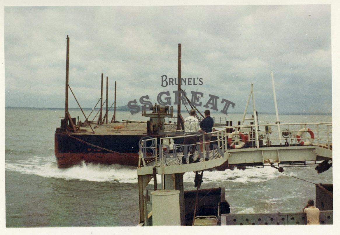 DescriptionSalvage of ss Great Britain, Falkland Islands. Urlich Harms pontoon at sea. Taken from towing vessel.