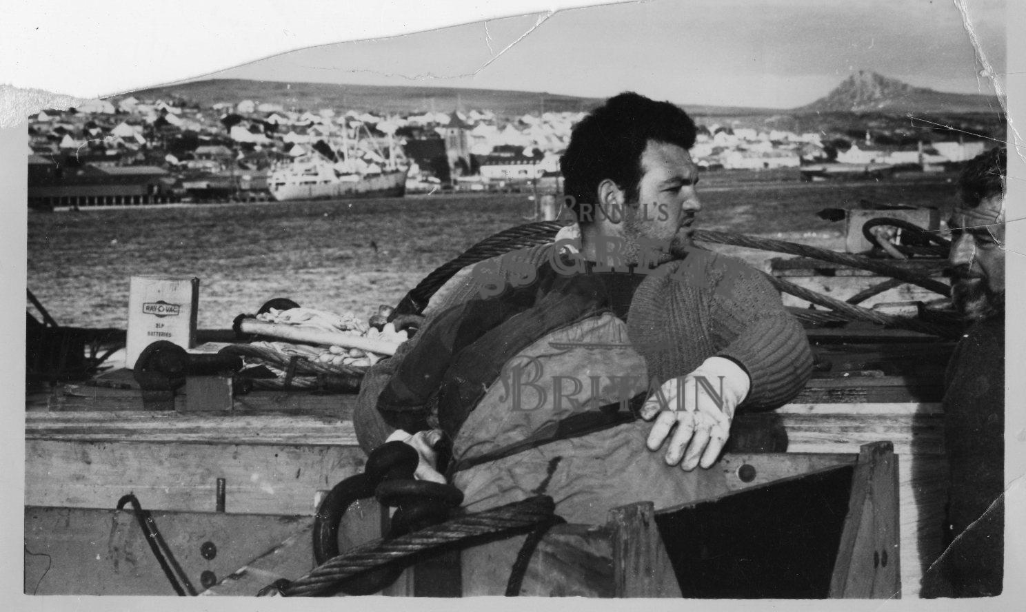 DescriptionSalvage of ss Great Britain, Falkland Islands. Unidentified person working on salvage vessel.