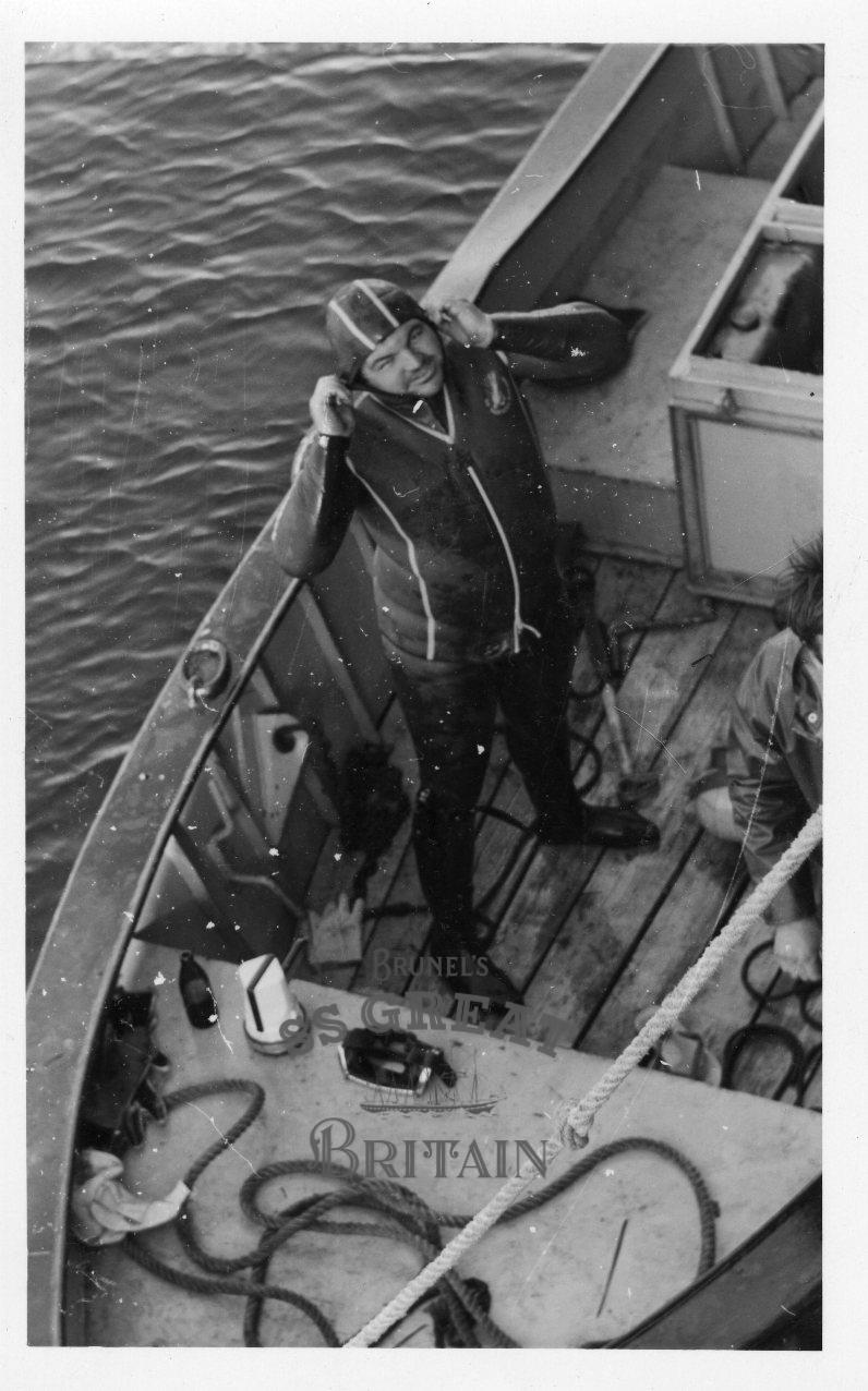 DescriptionSalvage of ss Great Britain, Falkland Islands. Diver preparing for dive.