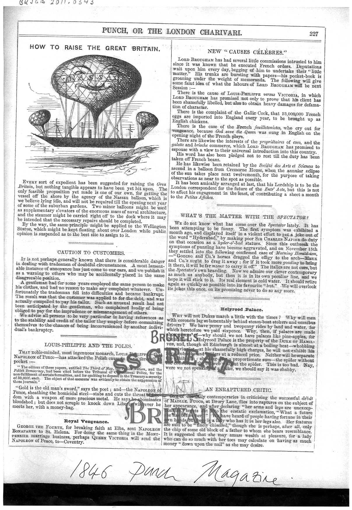 DescriptionA copy of a page from 1846 'Punch Magazine' featuring an article 'How to raise the Great Britain', relating to the ship being stranded at Dundrum Bay.