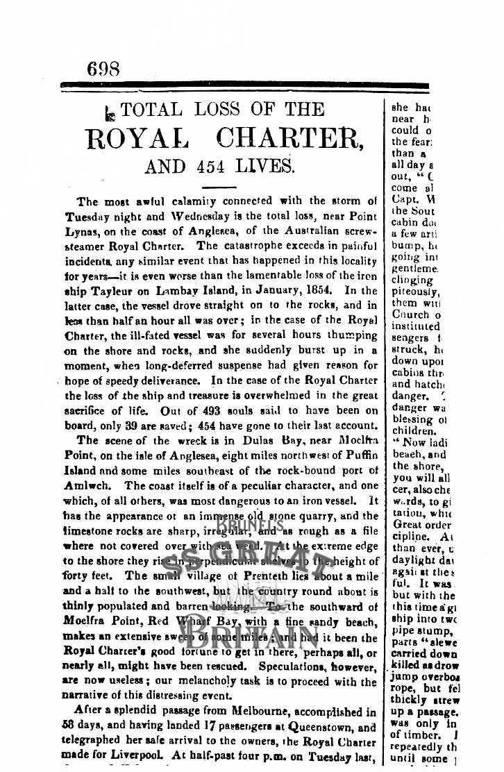 Total loss of the Royal Charter and 454 lives