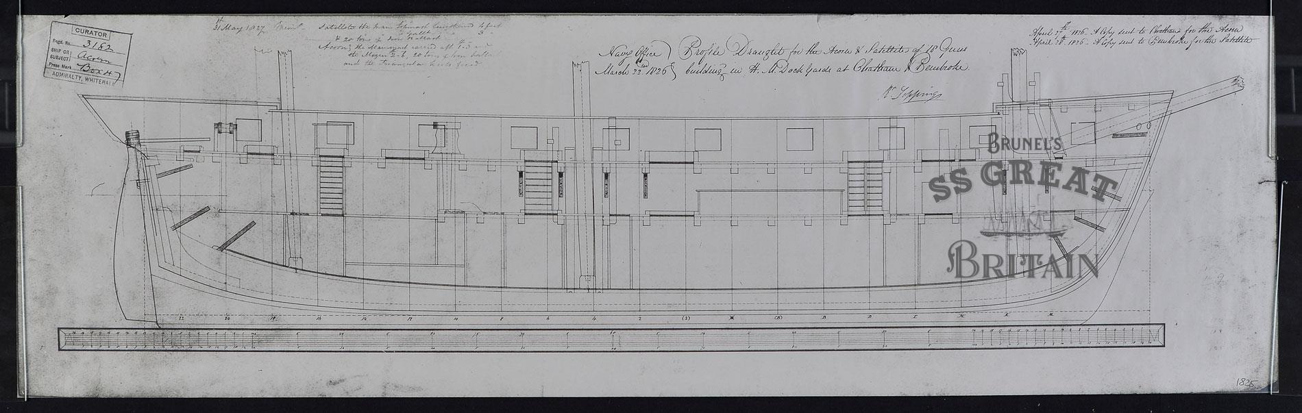 DescriptionSloop Acorn. Profile showing internal details. Includes technical specifications. Annotated with year by David MacGregor.