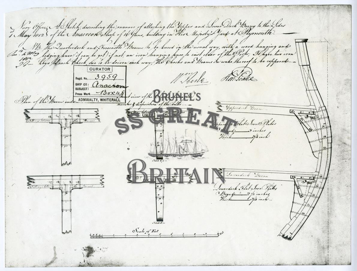 DescriptionSloop of 16 guns, Anacron. Upper and lower deck beam attachments.