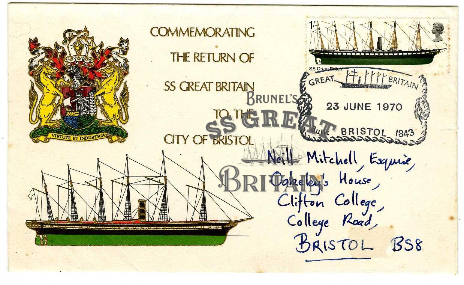 DescriptionCommemorative first day cover envelope, relating to salvage of ss Great Britain and her retrurn to Bristol. Donor's details on front, stamped: 23 June 1970.