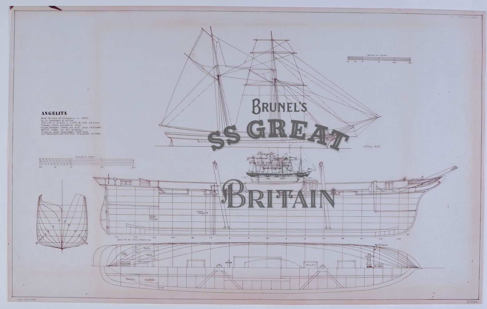 DescriptionSchooner Angelita. General arrangement (deck plan and profile), lines plan (sheer plan, half breadth and body plan), sail and rigging plan. Scale 1/4 inch to 1 foot.