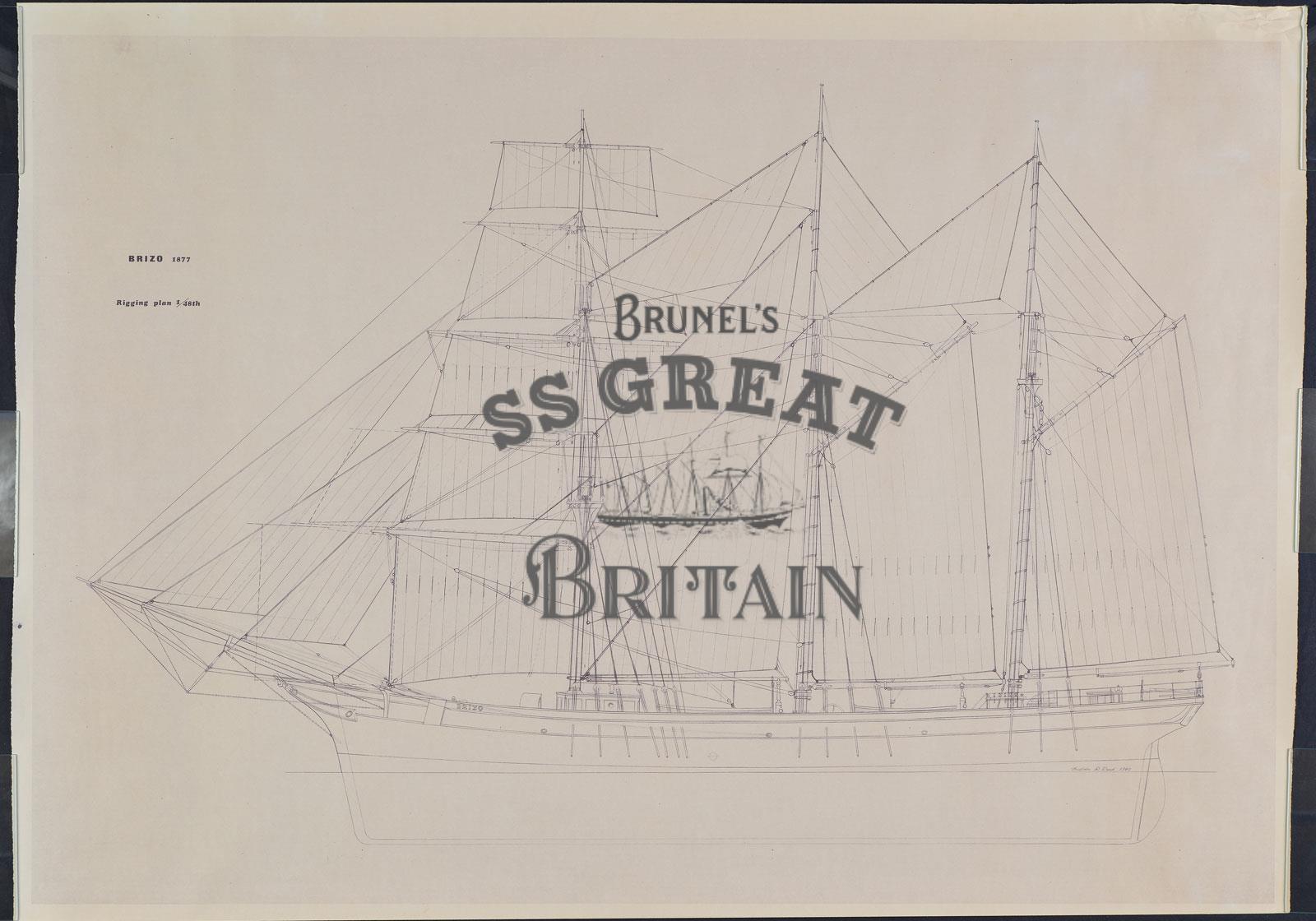 DescriptionShip Brizo. Sail and rigging plan (profile). Scale 1/48th.