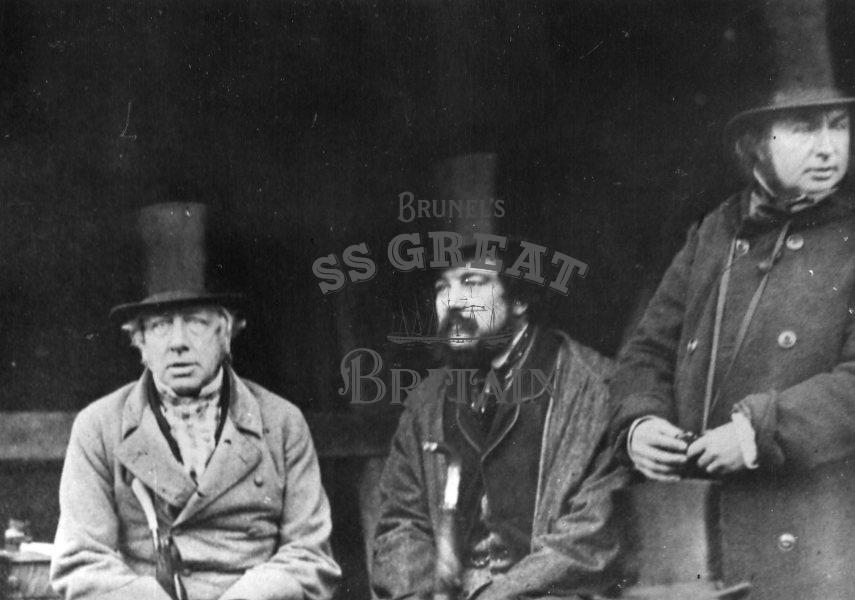 DescriptionDepicting George William Frederick Howard (Earl of Carlisle), Lord Paget, Isambard Kingdom Brunel awaiting final and successful attempt to launch ss Great Eastern - January 1858.