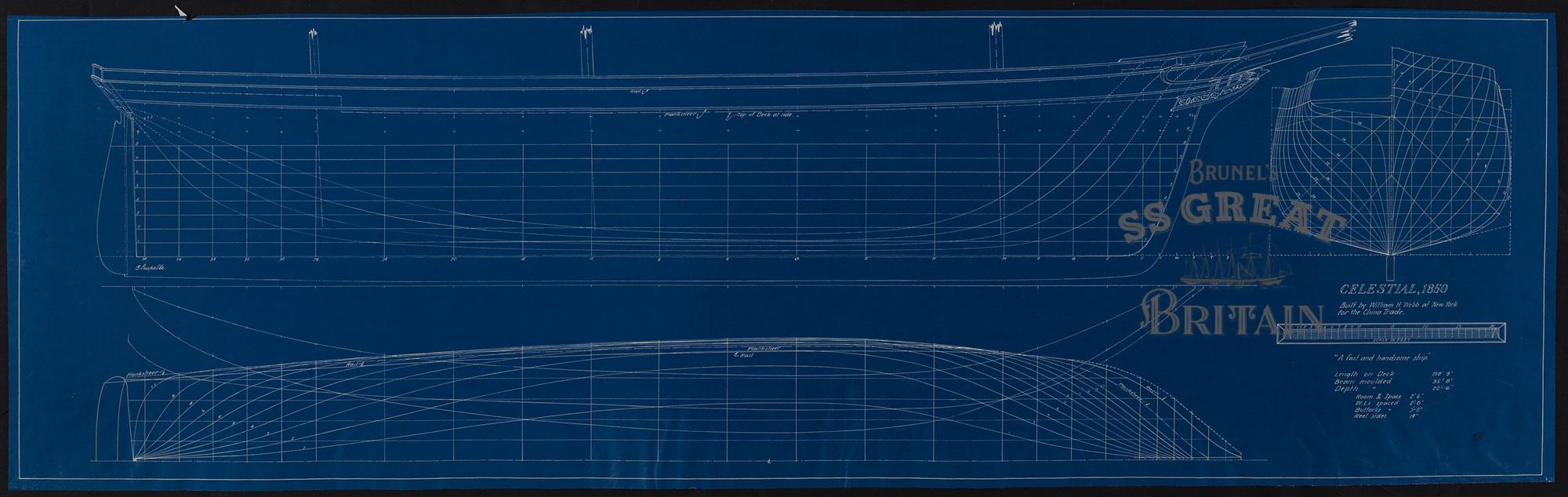 DescriptionShip Celestial. Lines plan (sheer plan, half breadth plan and body plan). Scale 1/4 inch to 1 foot. Includes technical specifications.