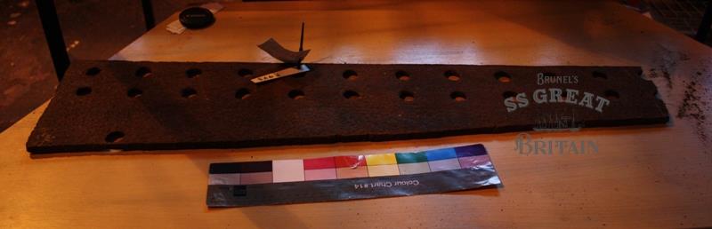DescriptionIron butt strap with two rows of rivet holes.
